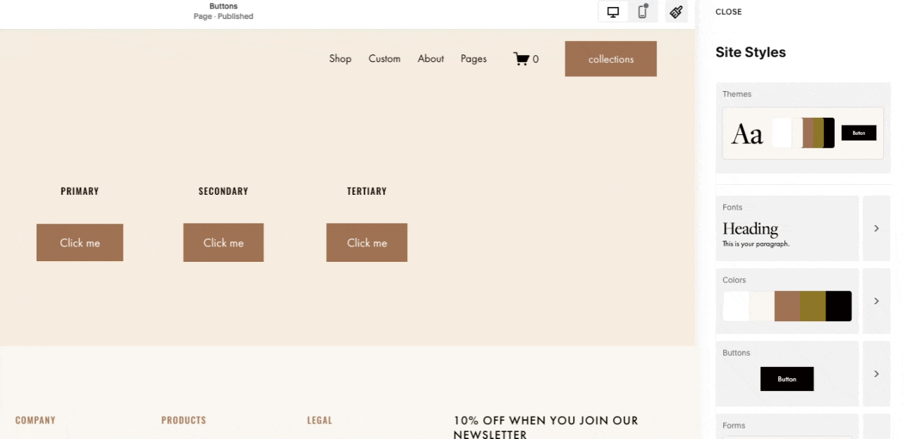 All of these button types inherit the master settings that we apply through the Site Styles menu.